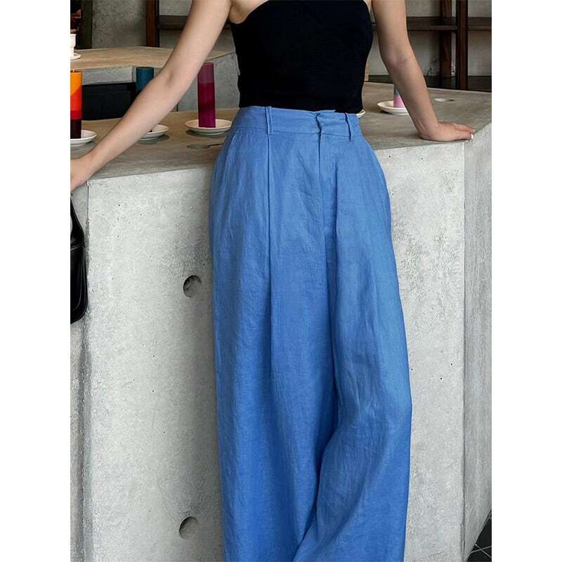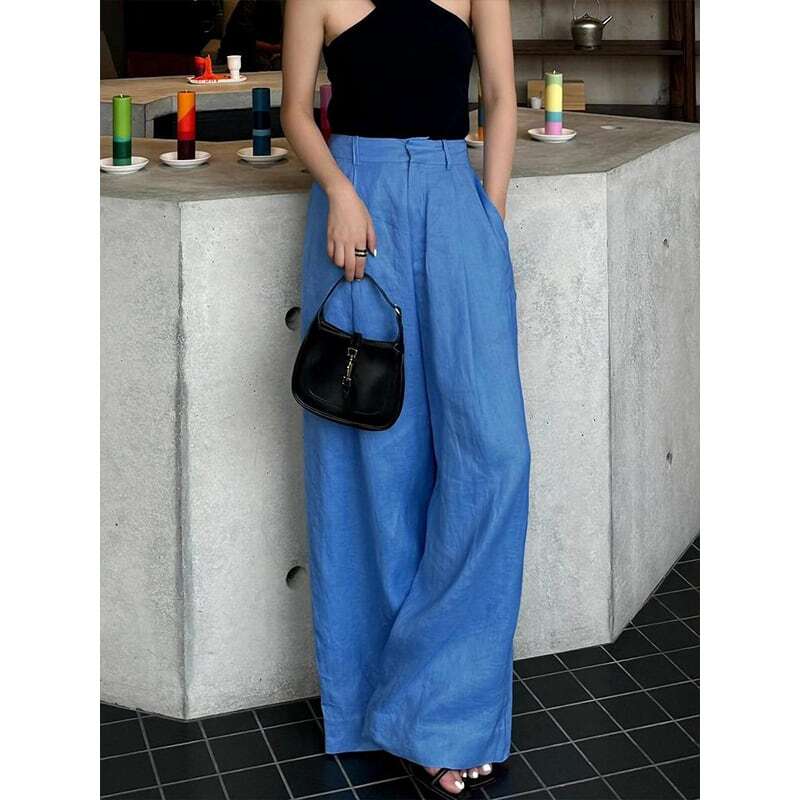 ▶︎鮮やかなブルーが目を引くワイドパンツ。