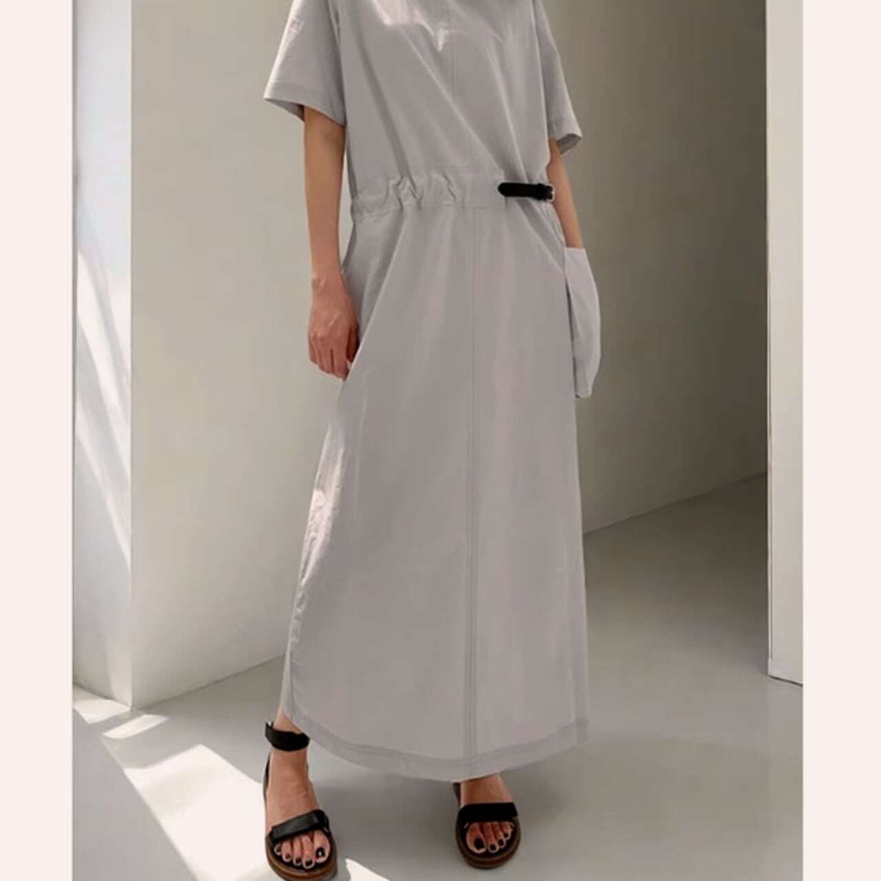 ▶︎シンプルなデザインながら一枚でサマになるロング丈ワンピースです。