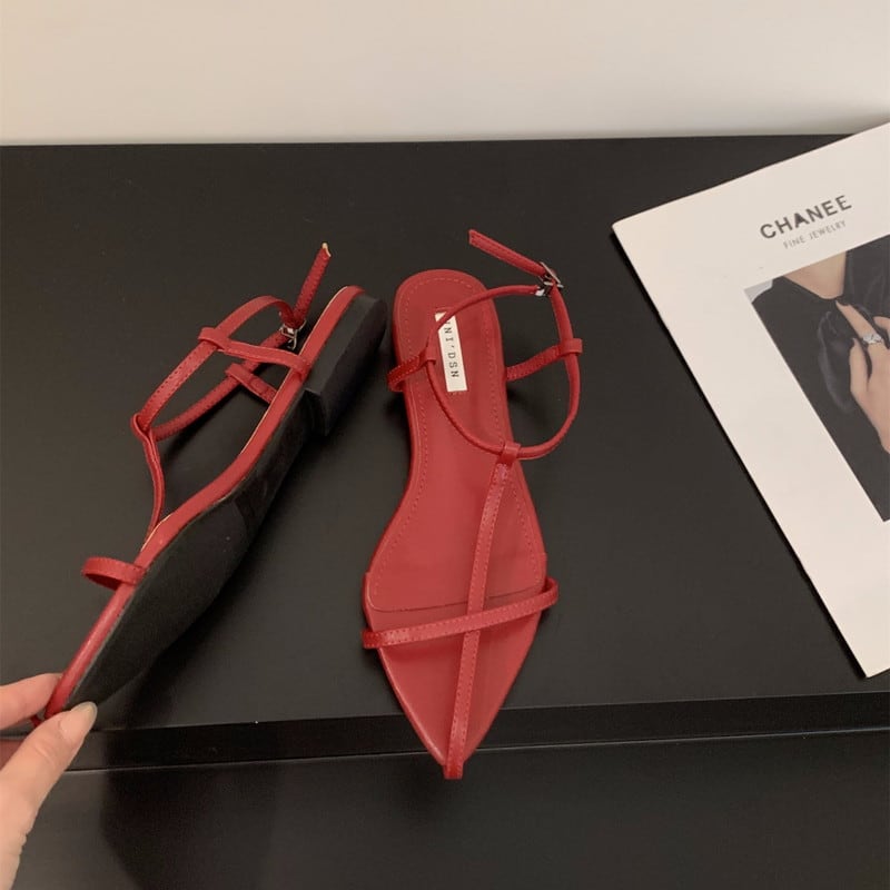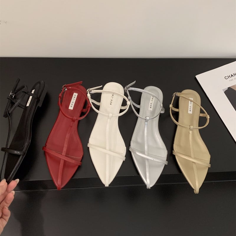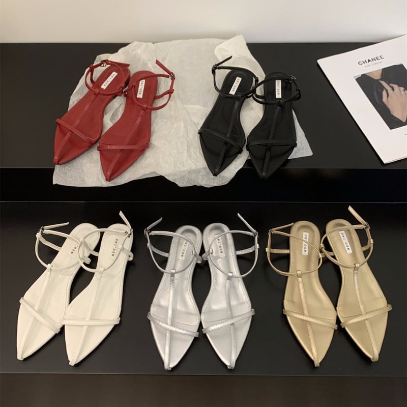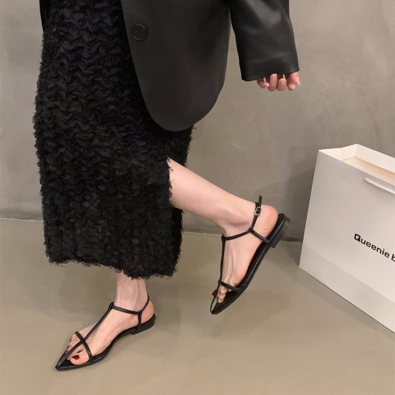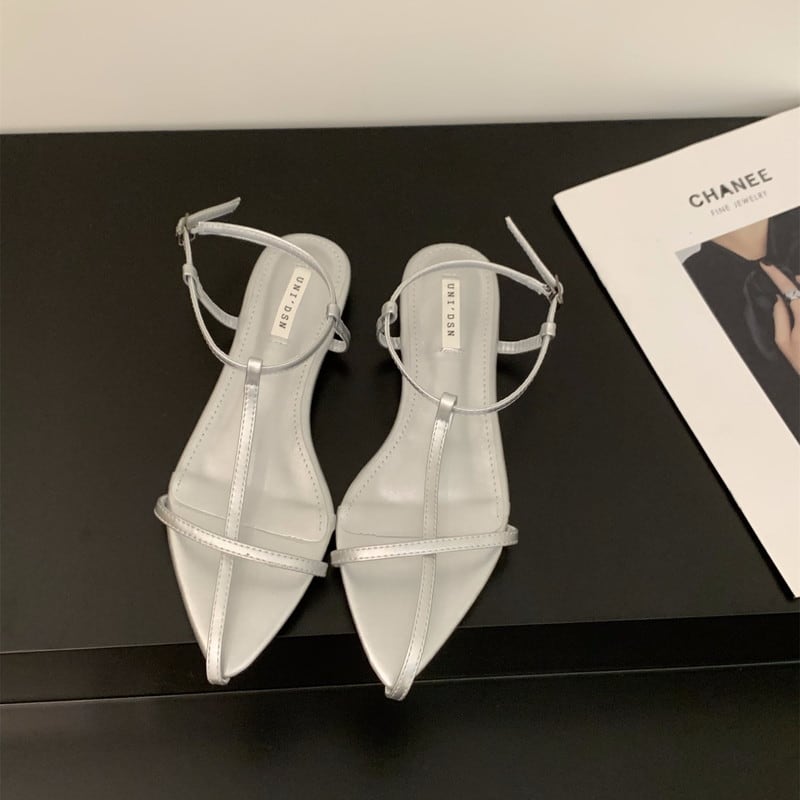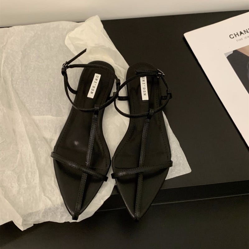 ▶︎Tストラップとポインテッドトゥが洗練された印象を与えてくれるサンダル。
