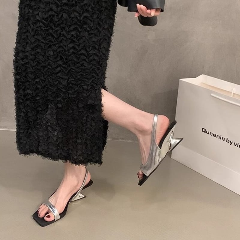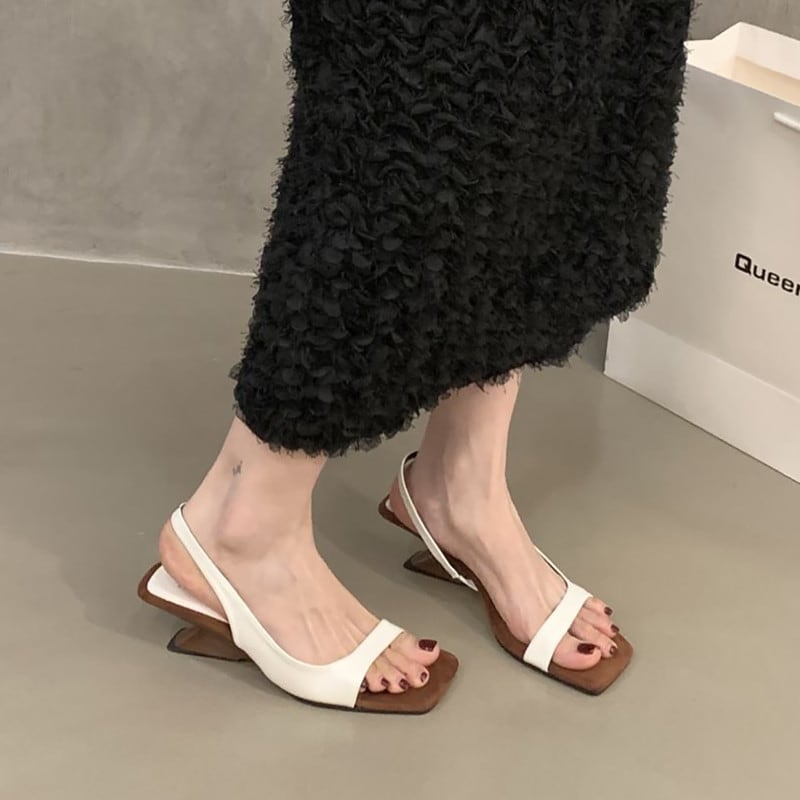 ▶︎スクエアトゥとバックストラップが洗練された印象のサンダル。