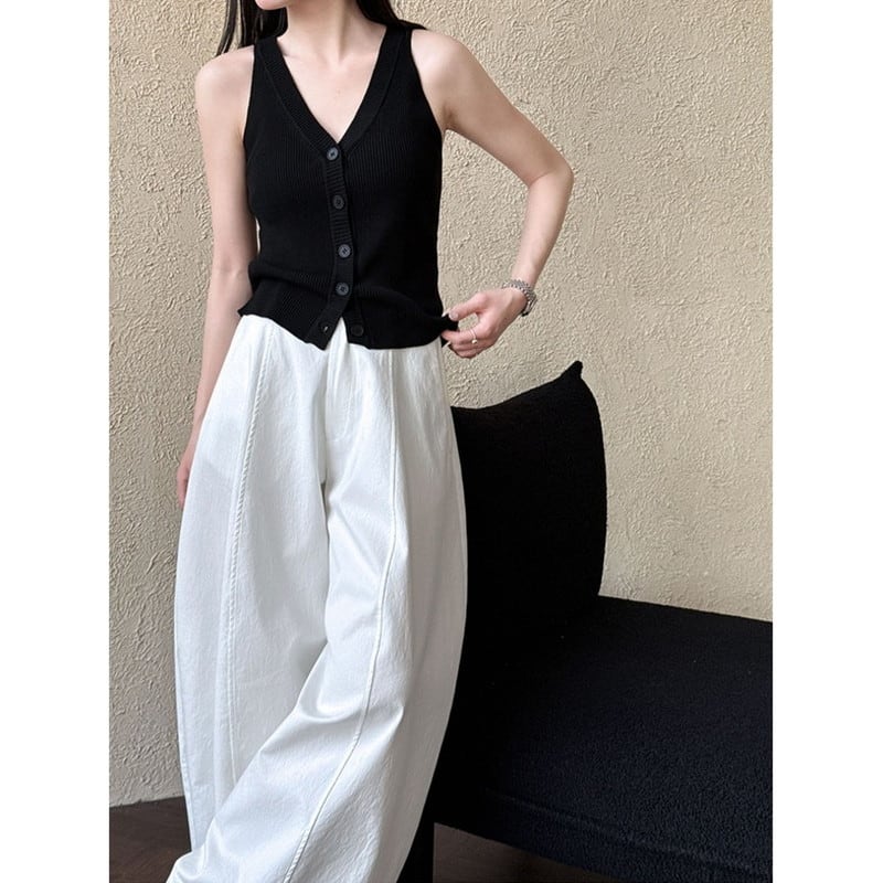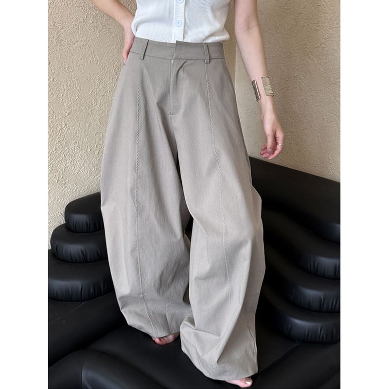 ▶︎ハイウエストで脚長効果も期待できるワイドレッグパンツ。