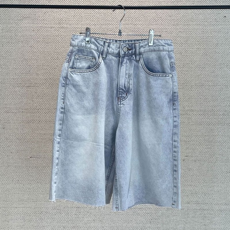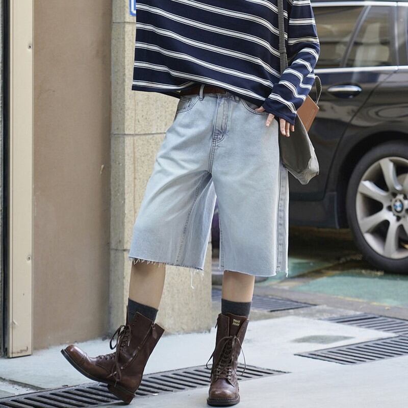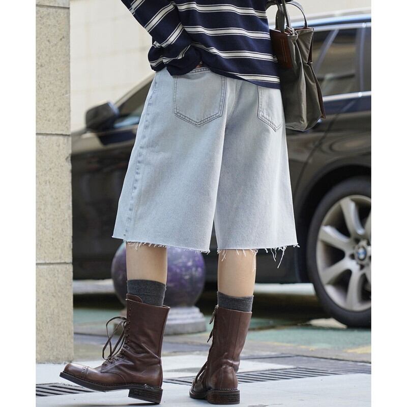 膝上丈とワイドシルエットが、こなれたカジュアルスタイルを演出します。