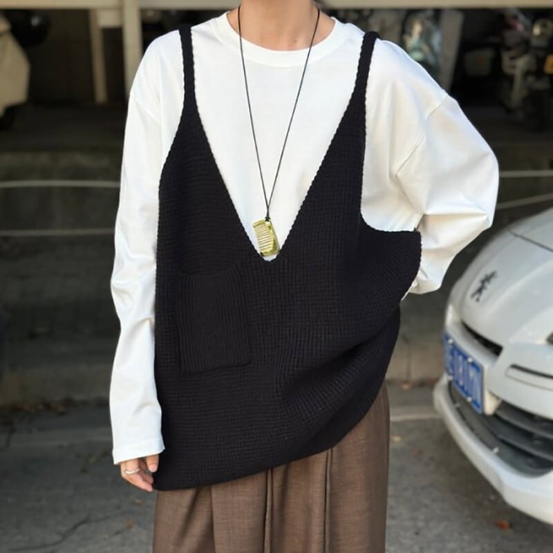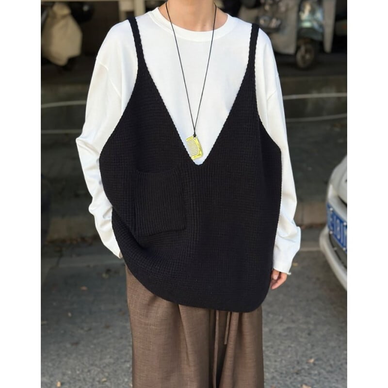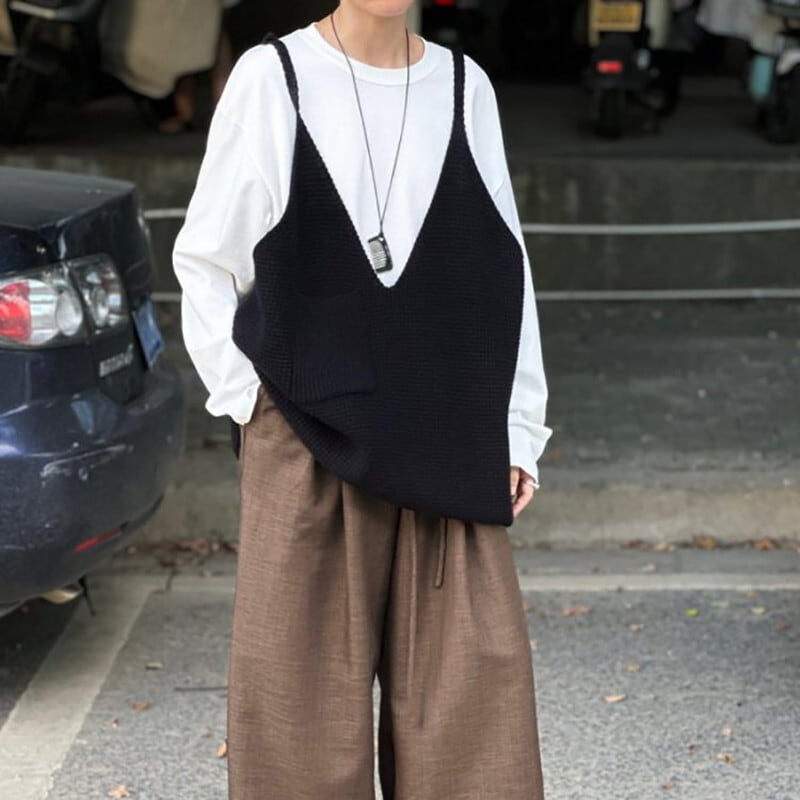 ゆったりとした抜け感のあるシルエットで、ロンTやシャツなど色々なアイテムとのレイヤードを楽しめます。