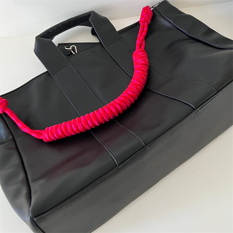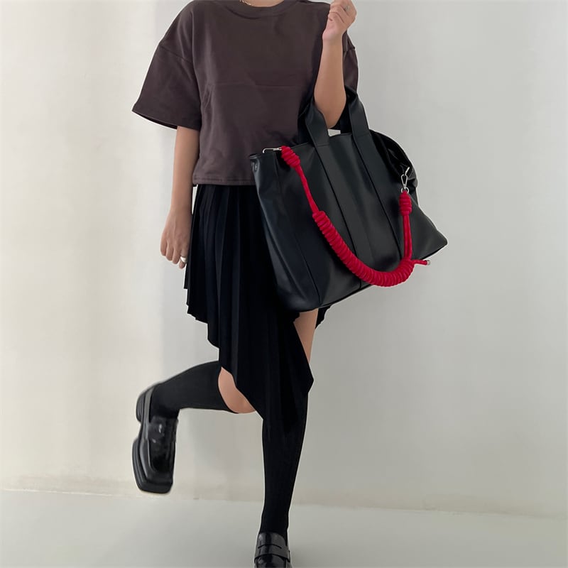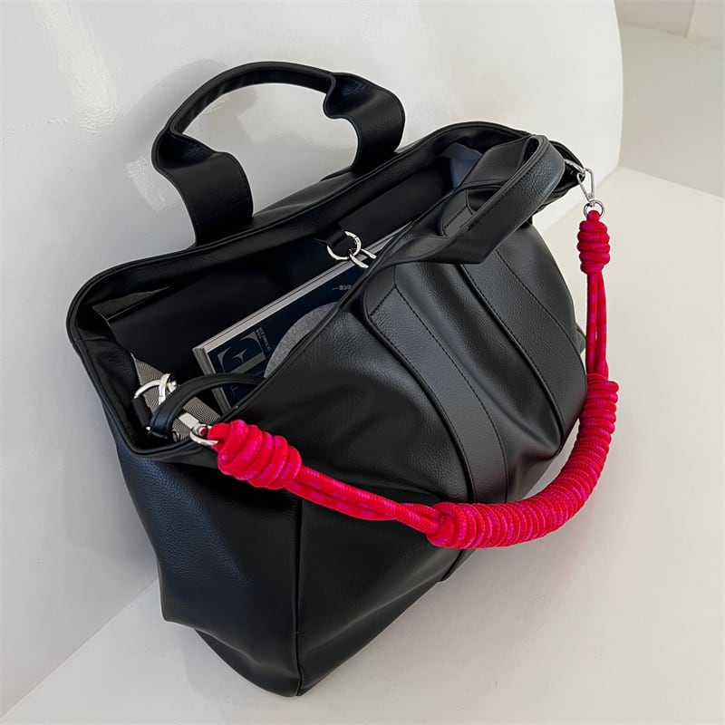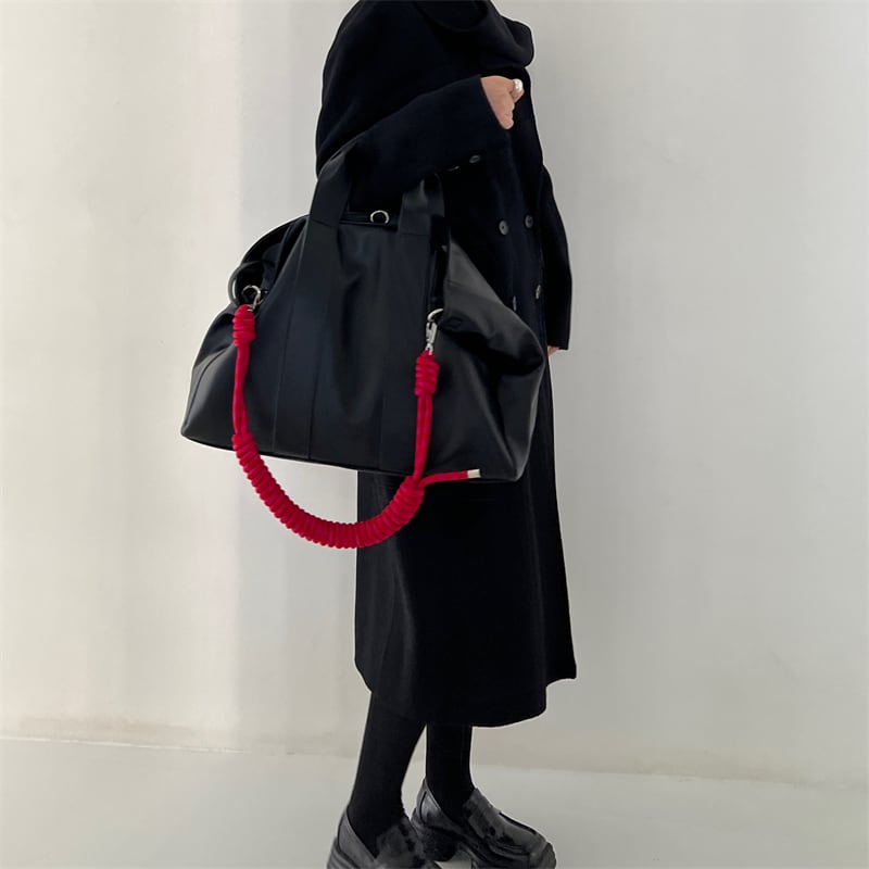 ▶︎鮮やかな持ち手のカラーがアクセントになったビッグトートバッグ。