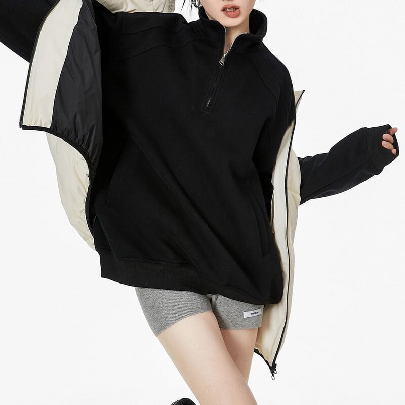 ジップの開け方次第で首元の印象を変えられ、スタイリングの幅も広がります。