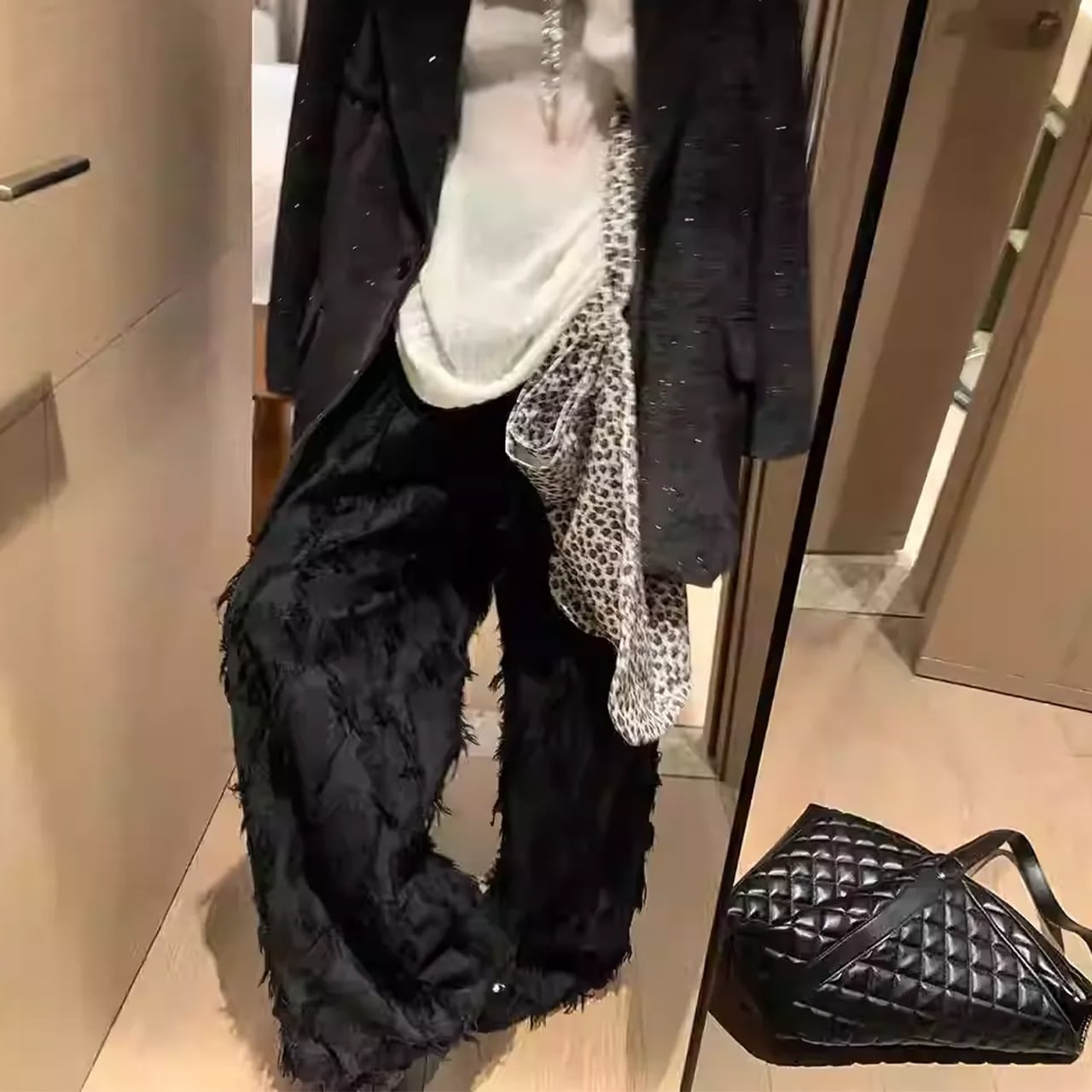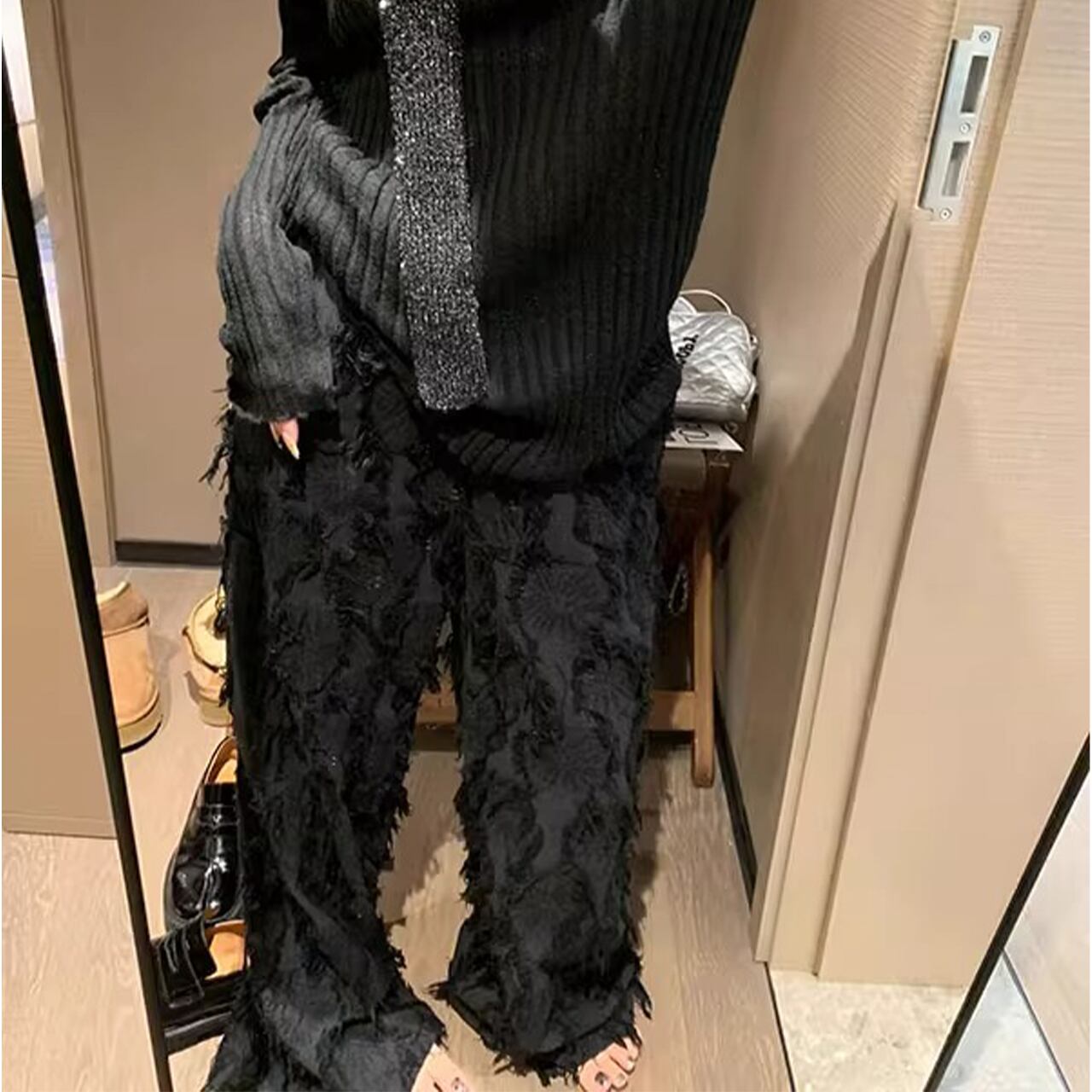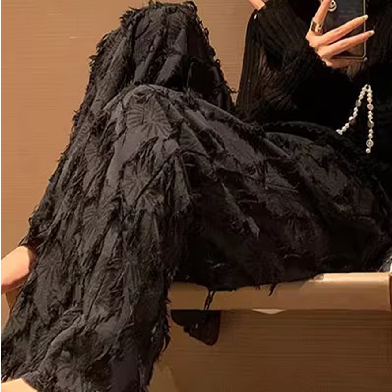 ▶︎シンプルながらジャガードフリンジの生地で存在感のあるパンツ。