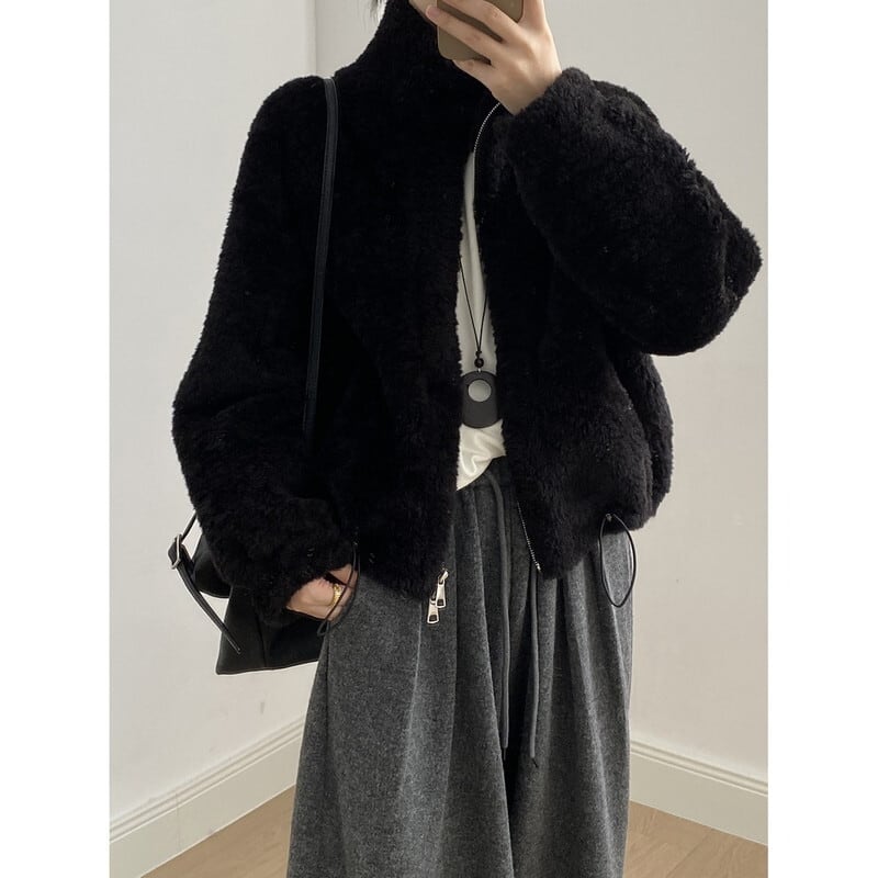 stand collar fur jacket 10887