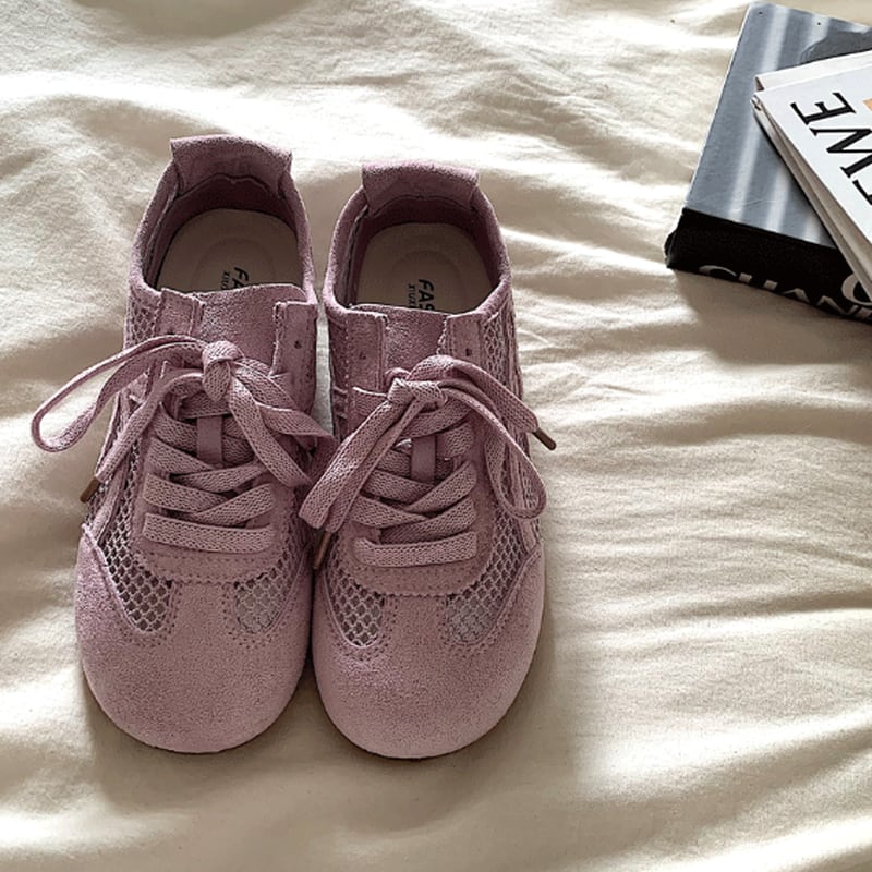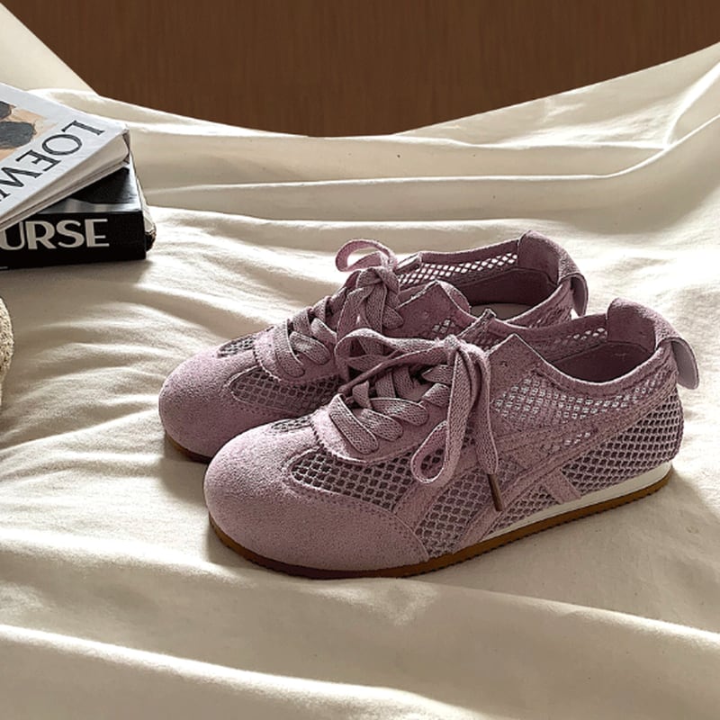 ▶︎透け感のあるメッシュが涼しげなシンプルながら表情豊かなデザインのスニーカー。