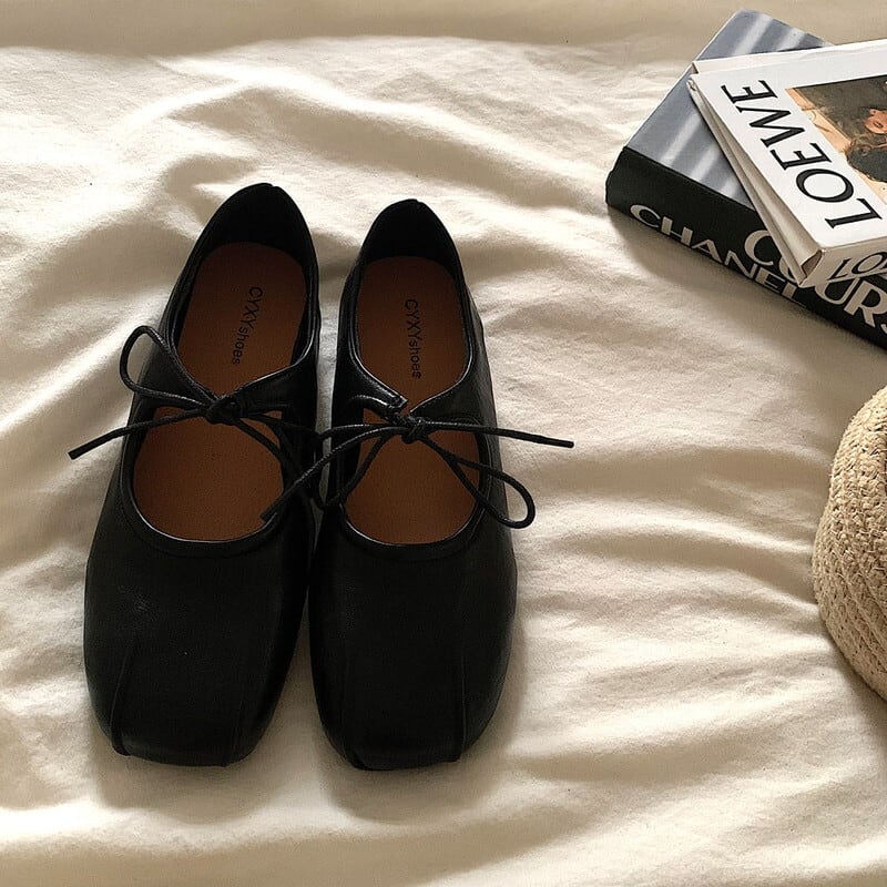 ▶︎リボンがアクセントになったクラシカルな雰囲気のフラットシューズ。