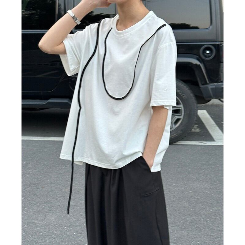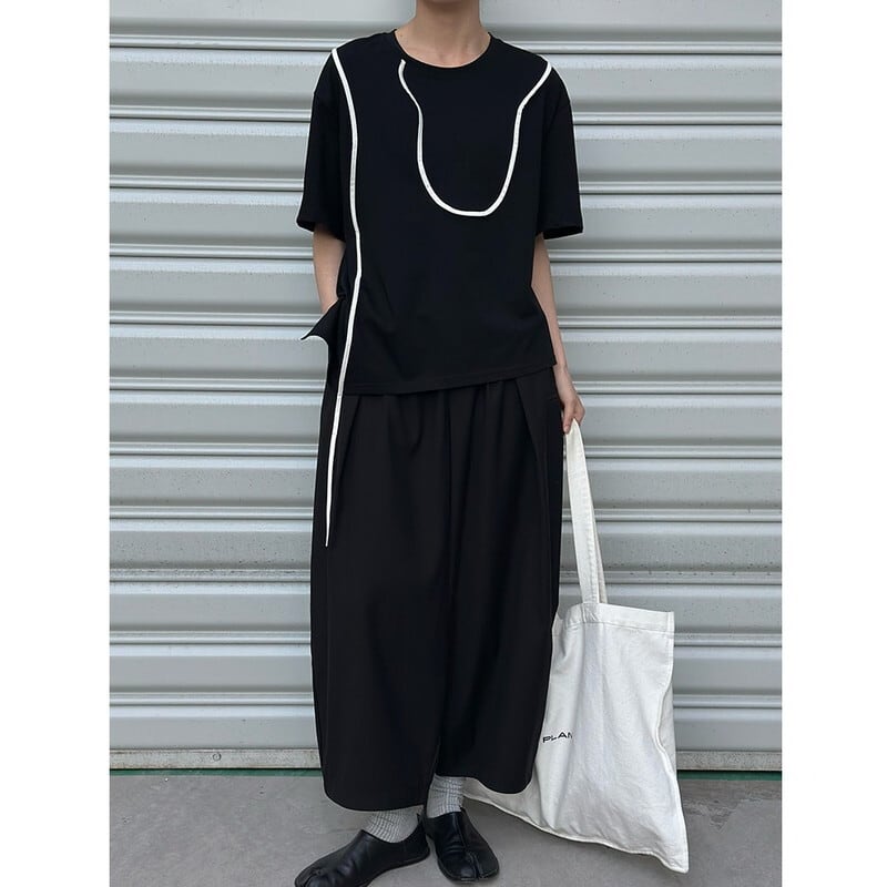 ▶︎バイカラーのパイピングが目を引くTシャツです。