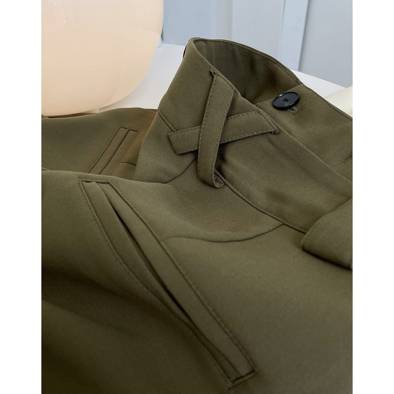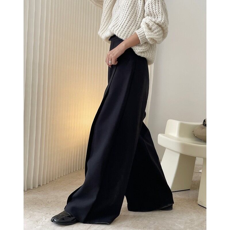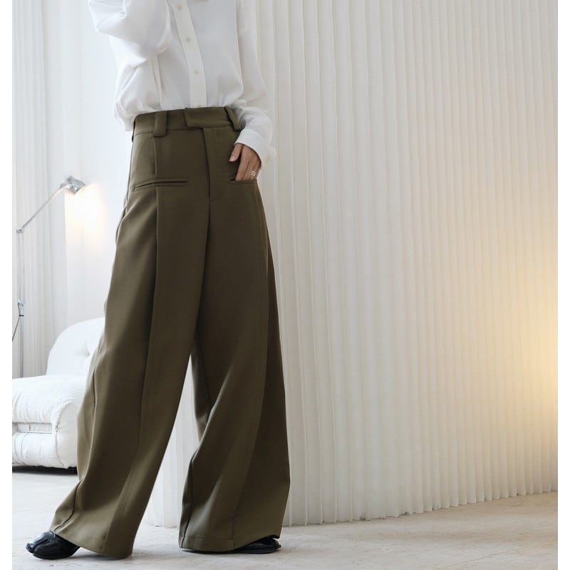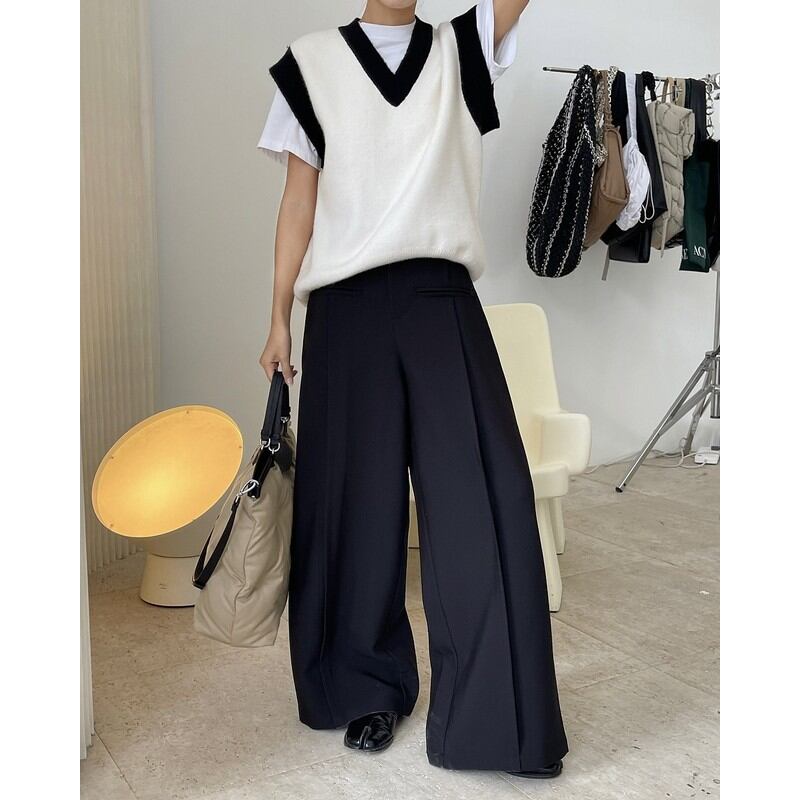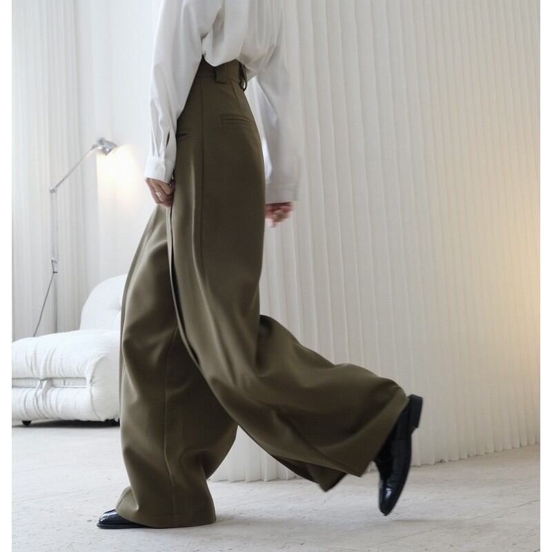 ▶︎センターに入ったラインが脚長効果のあるワイドパンツ。トップスはすっきりとコンパクトなアイテムがおすすめです。