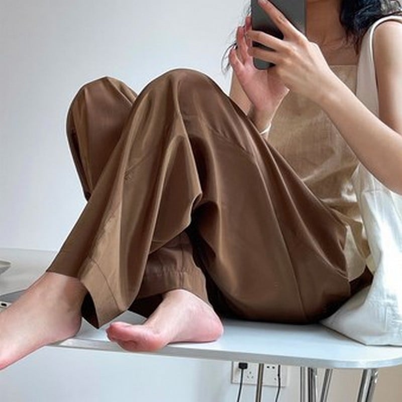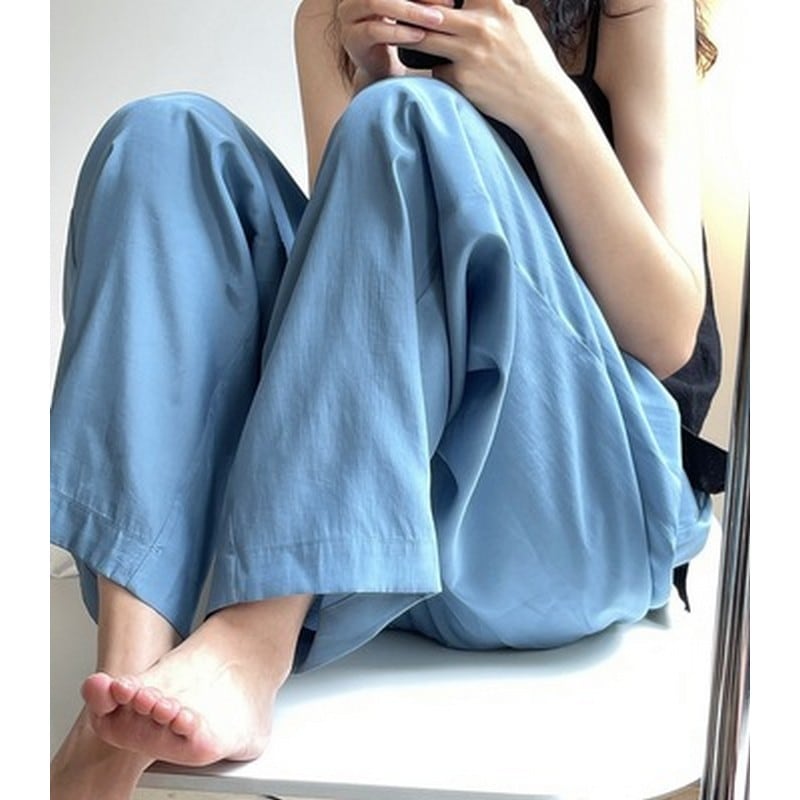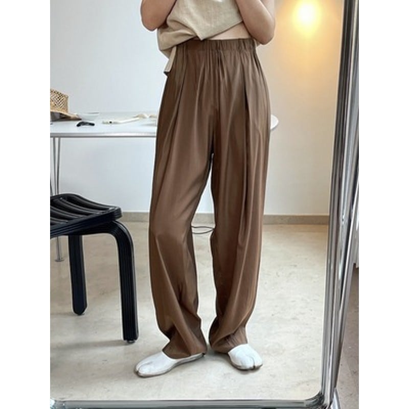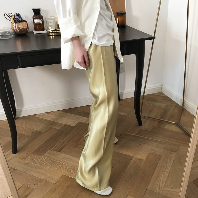 ▶︎春の日差しに映える光沢感のあるパンツ。