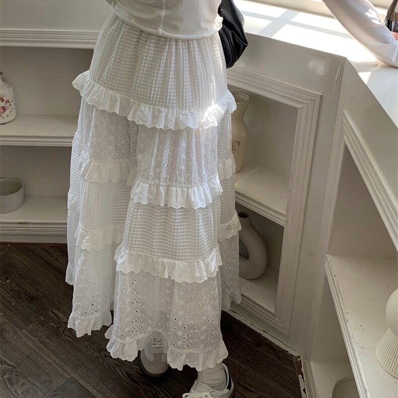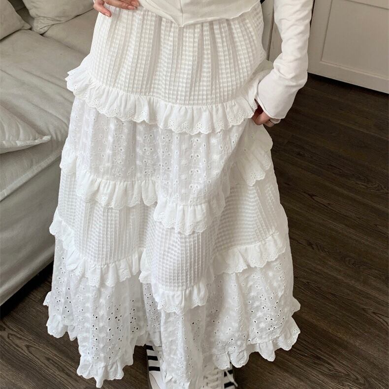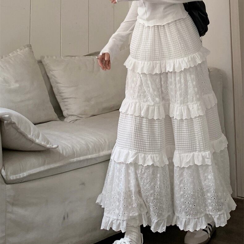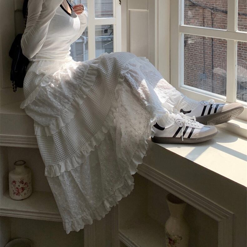 ▶︎レースを切り返しにしたデザインがキュートな魅力のティアードスカート。足元はスニーカーやブーツを合わせるのがおすすめです。