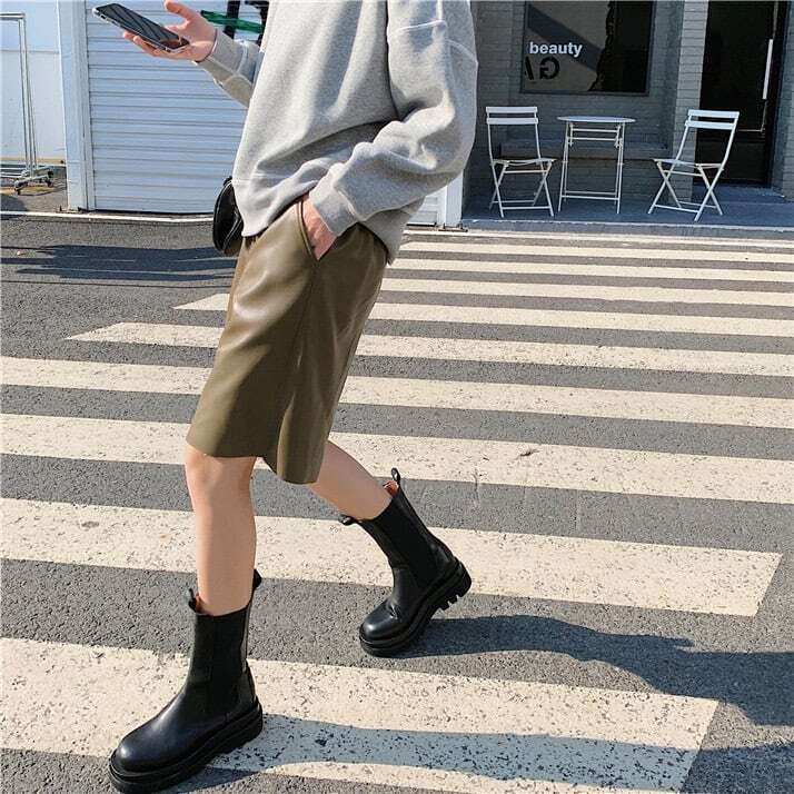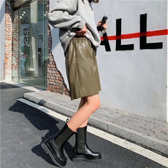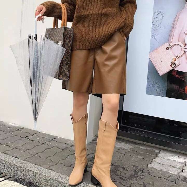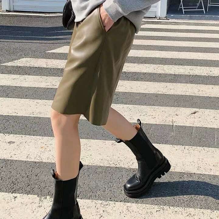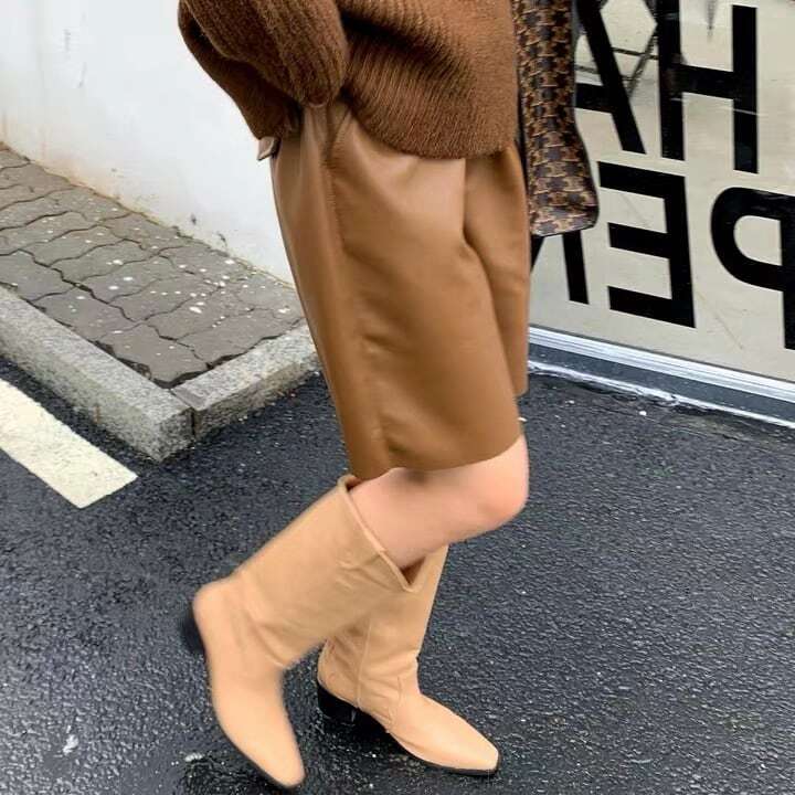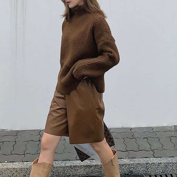 ▶︎柔らかな質感のエコレザーパンツ。気分に合わせてミドルブーツやロングブーツと合わせて。ウエストゴムも嬉しいポイントです。