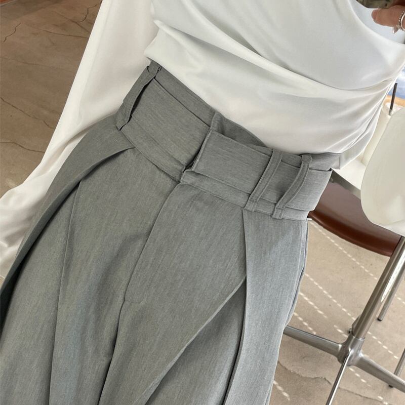 ハイウエストなのでトップスをインしたり、ショート丈のアイテムを合わせればさらにが脚長効果が期待できます。