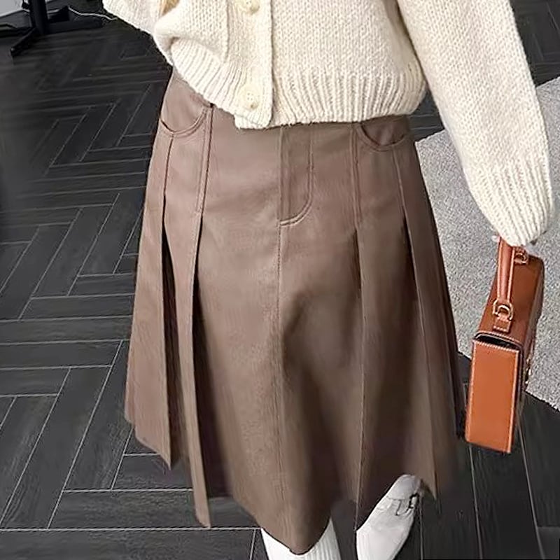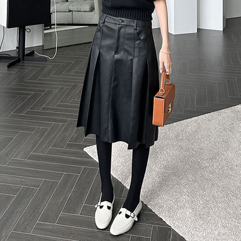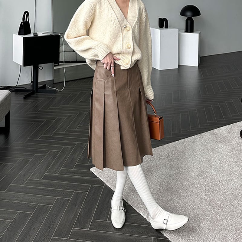 ▶︎ボックスプリーツとフレアシルエットが上品な印象。