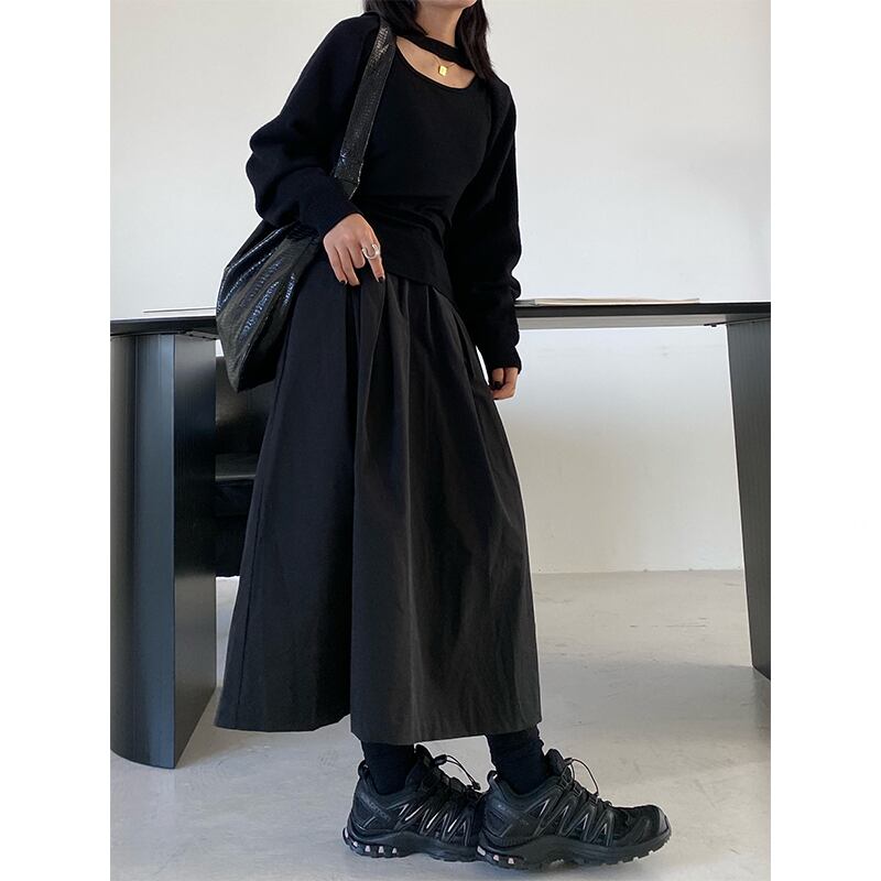 シンプルなトップスと合わせるだけでモードな雰囲気に仕上がります。