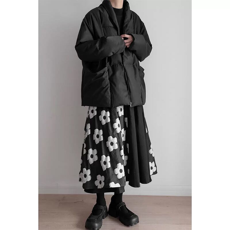 ▶︎立体感のある花柄生地に切り替えデザインが斬新な存在感のあるスカート。