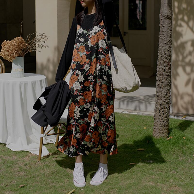 レトロな印象のフラワープリントが存在感たっぷりの1枚です。