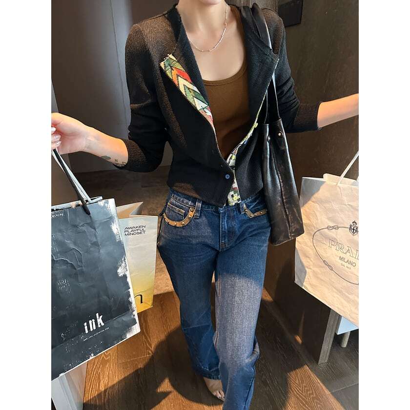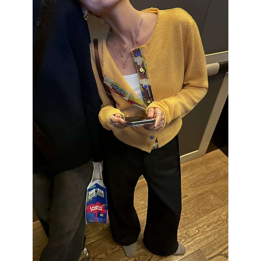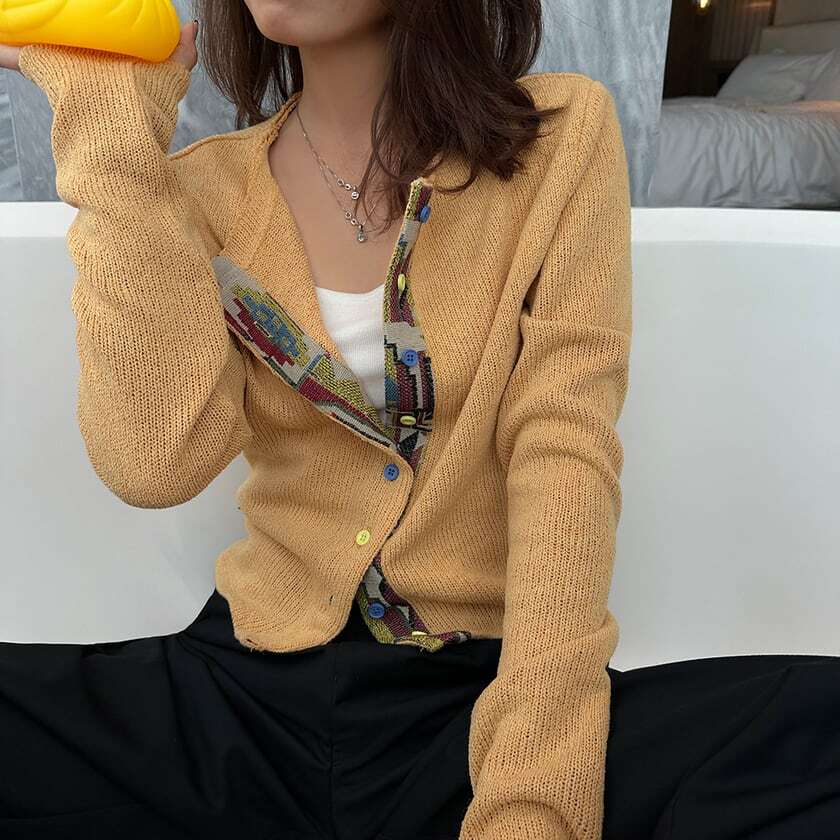 ▶︎カラフルなボタンと、前立て部分にデザインされたエスニック模様で、ボタンを閉じても開けてもどちらで着用しても個性の出るニットカーディガン。