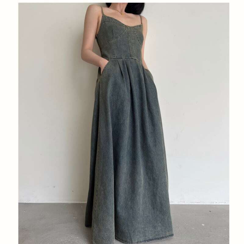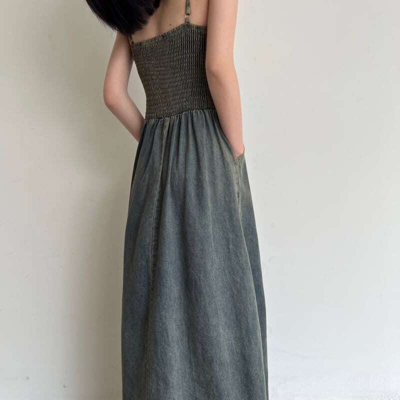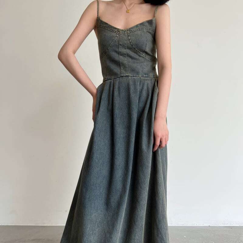 ▶︎ヴィンテージライクなロングデニムワンピース。