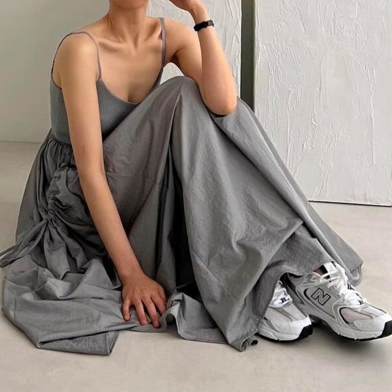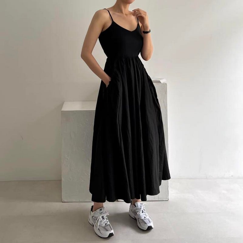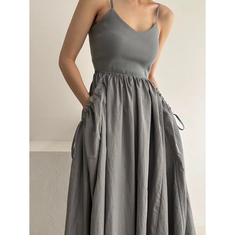 ▶︎キャミソールのトップスに裾が大きく広がる女性らしいスカートがドッキングしたドレス。
