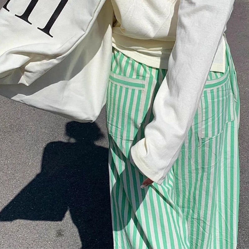 ▶︎暑い日に着たいグリーンのストライプのパンツ。
