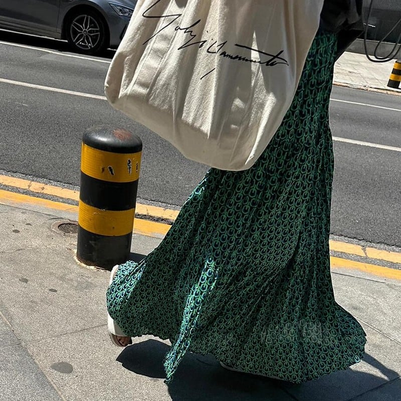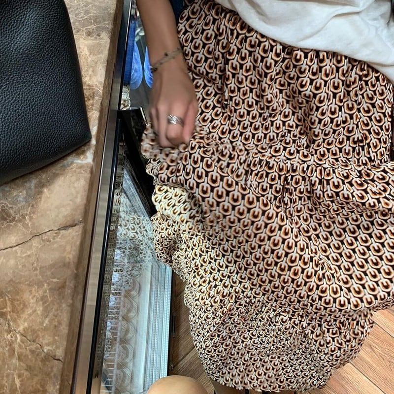▶︎暑い日に着たい、レトロなプリントのロングスカート。ティアードのデザインで大人可愛さもあるシルエットです。