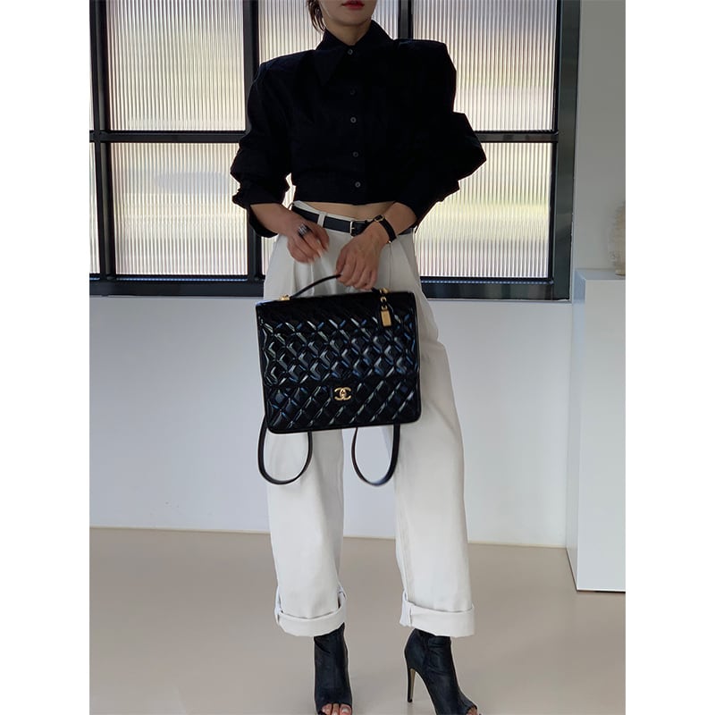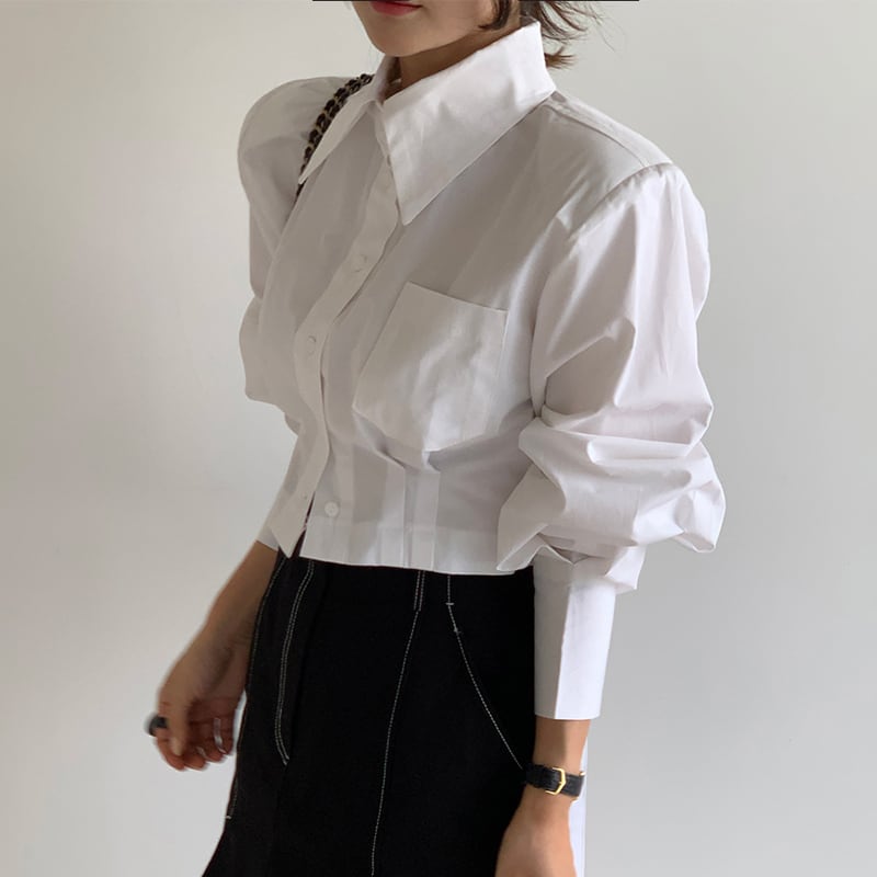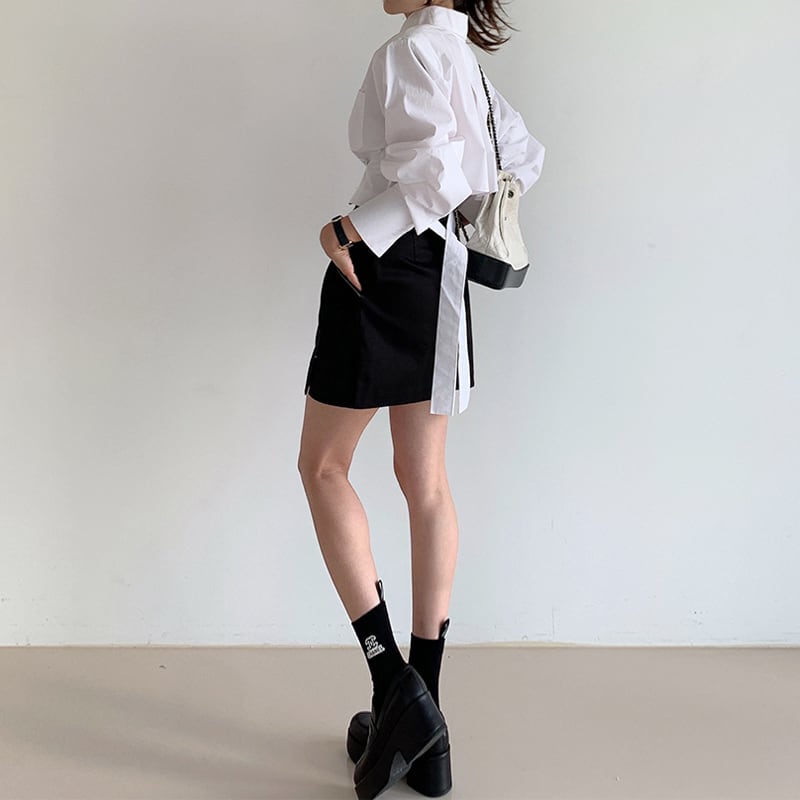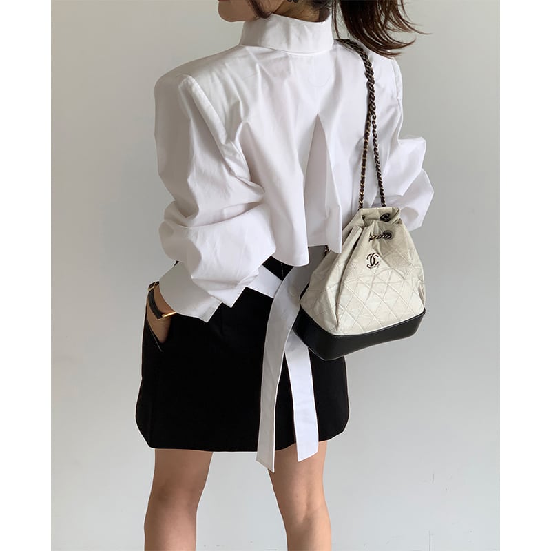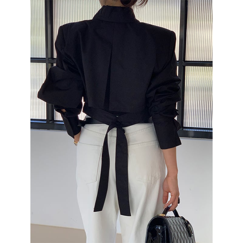 ▶︎後ろ姿まで抜かりなく、一癖あるクロップドシャツ。