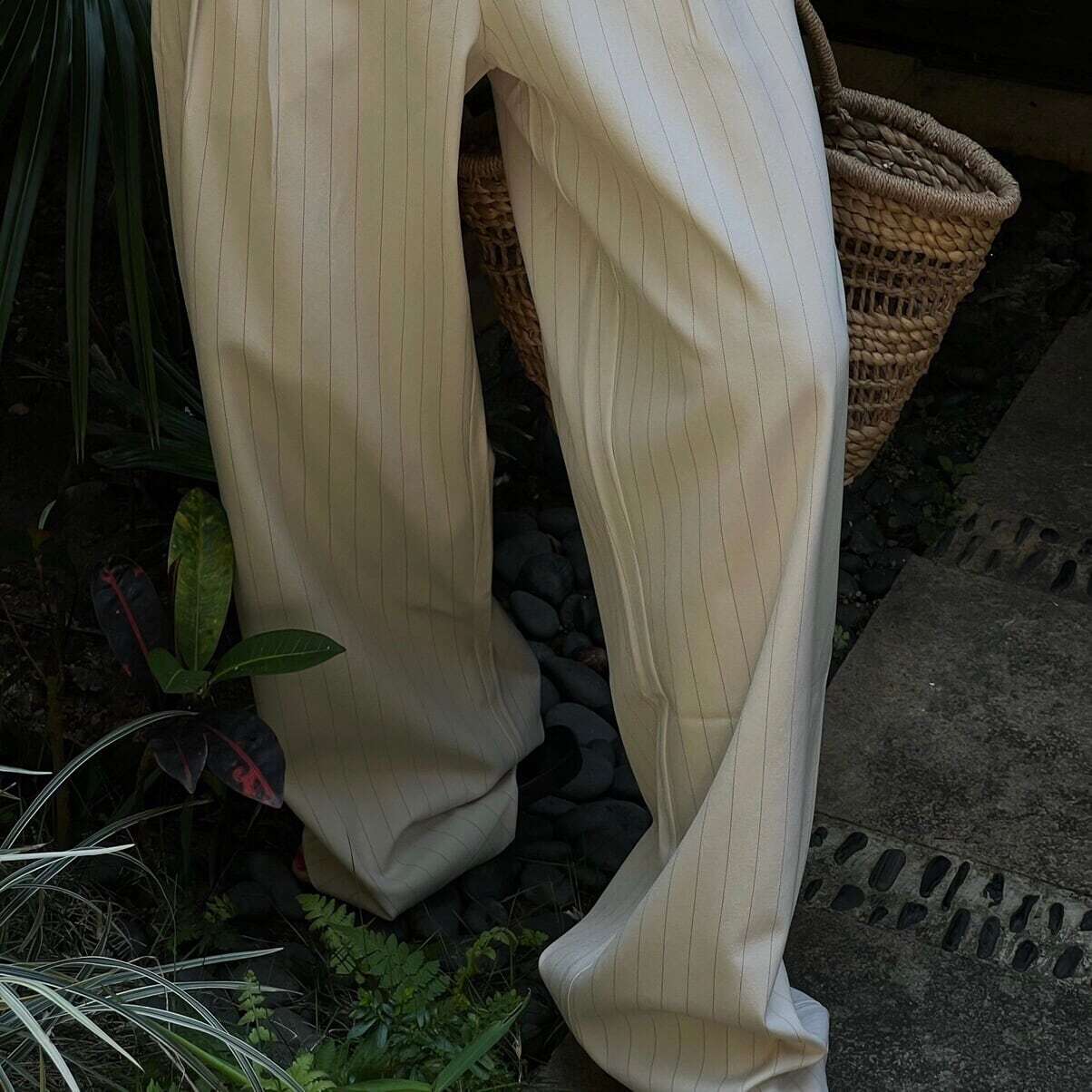 ▶︎ウエストにたっぷり入ったタックでゆったり広がるリラックス感のあるパンツ。