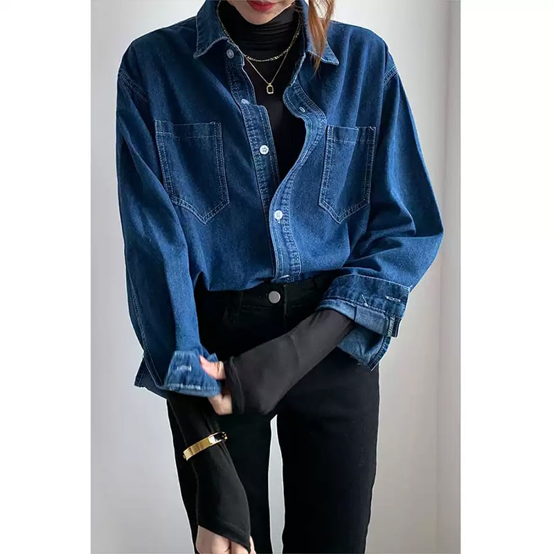小物使いで雰囲気を変えられるのもデニムシャツのポイント。