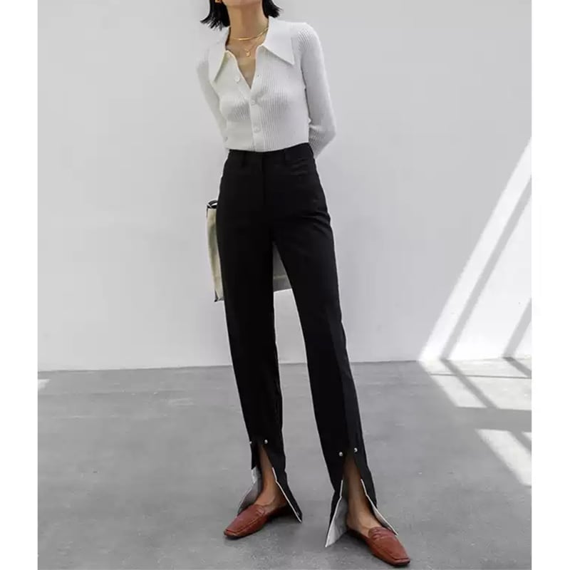 ▶︎シックでスタイリッシュな襟付きニットカーディガン。
