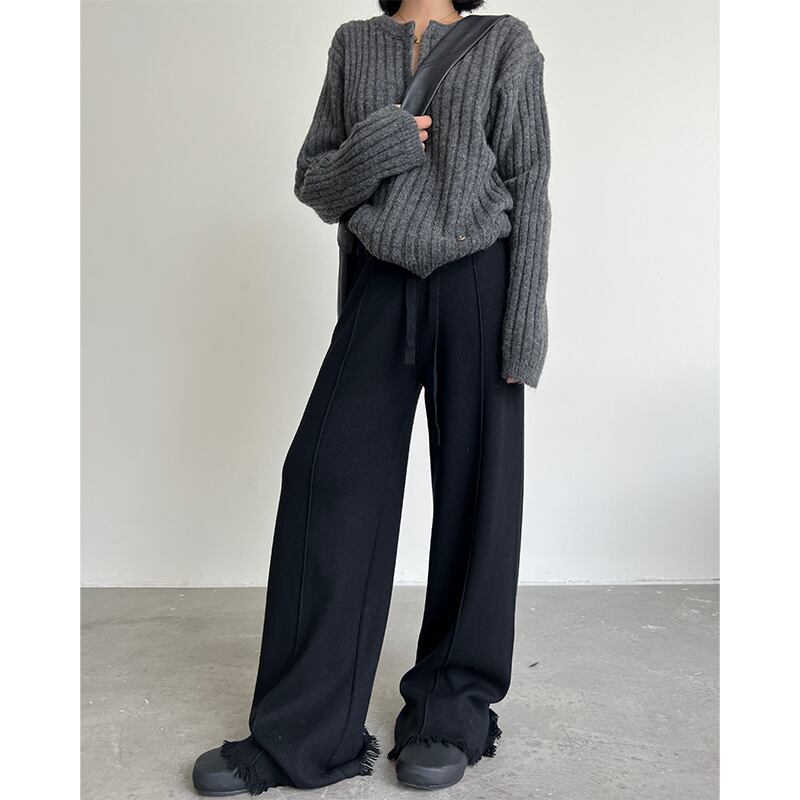 裾のフリンジデザインがシンプルなスタイルにさりげないアクセントをプラス。