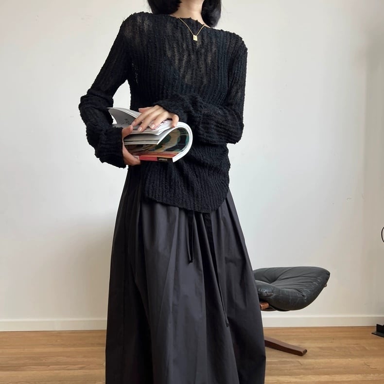 ▶︎透け感を楽しめるニット。
