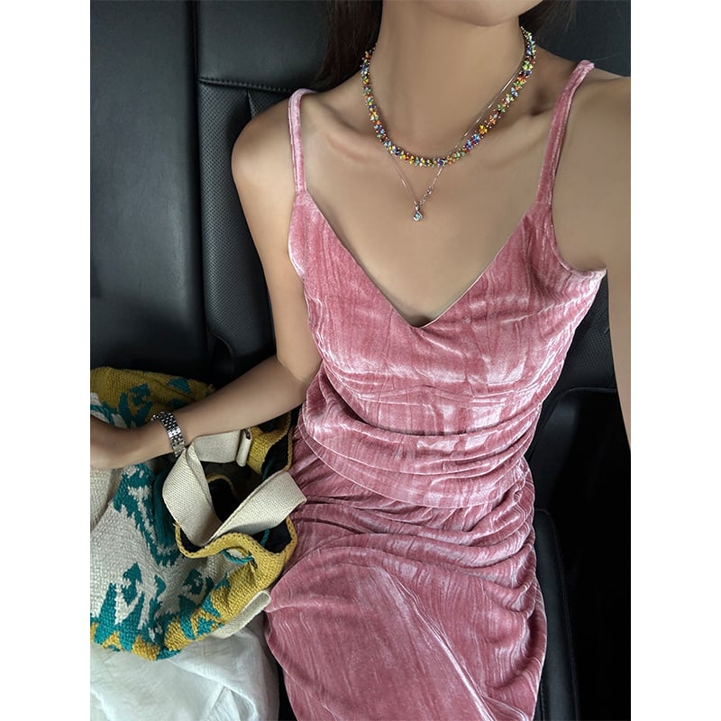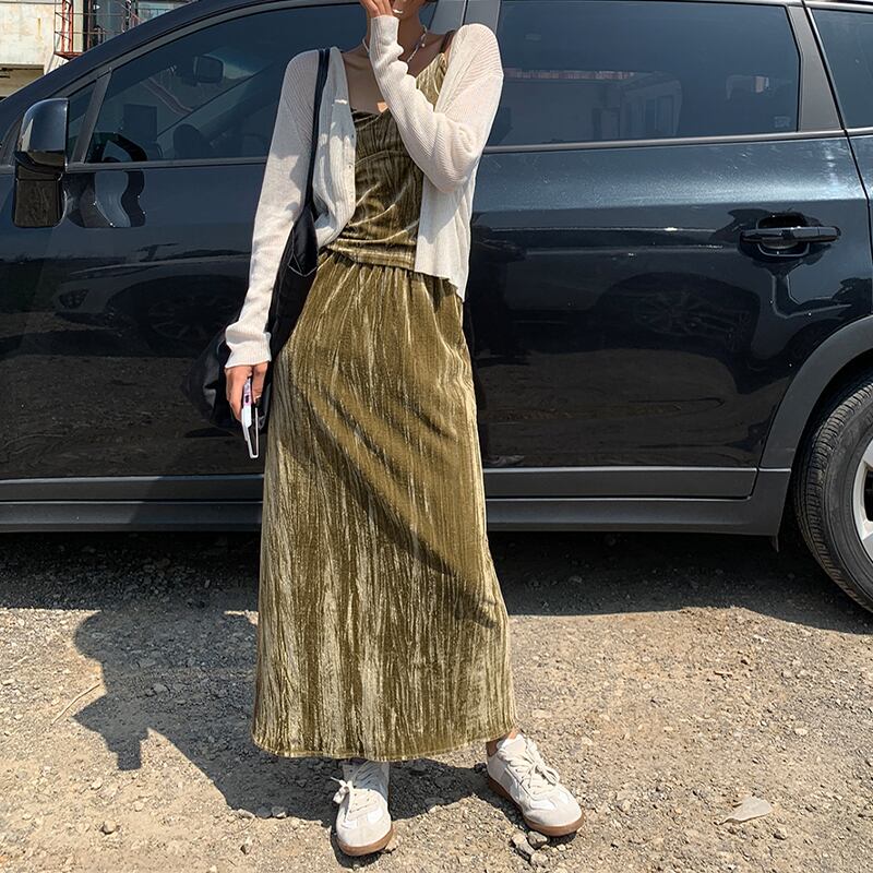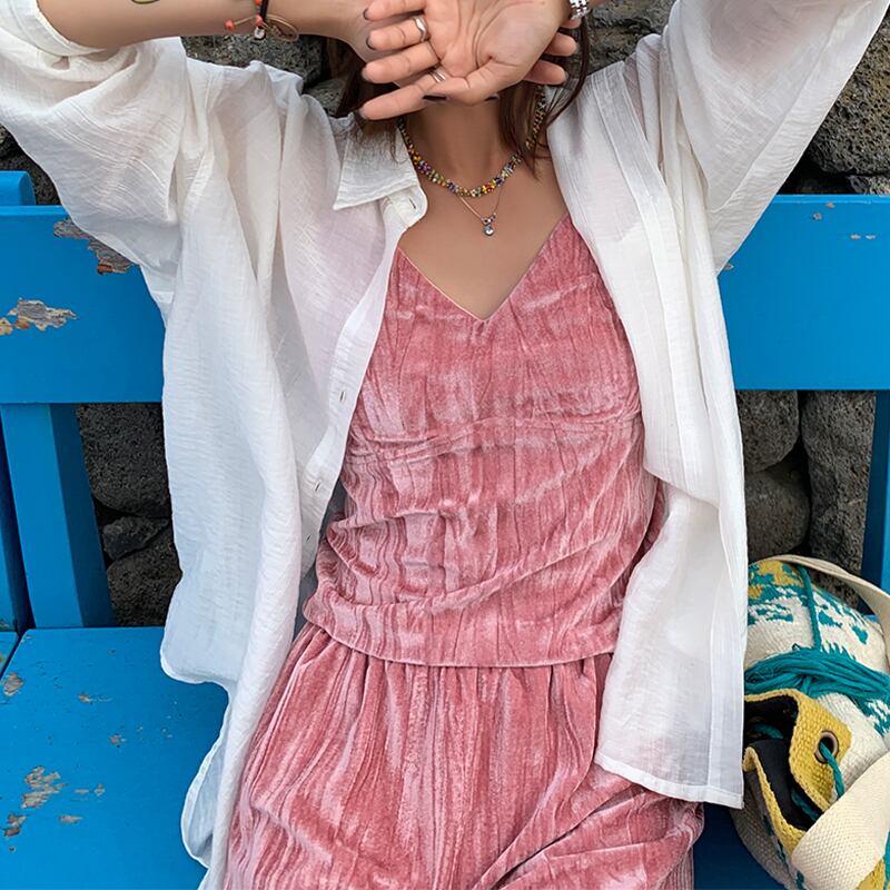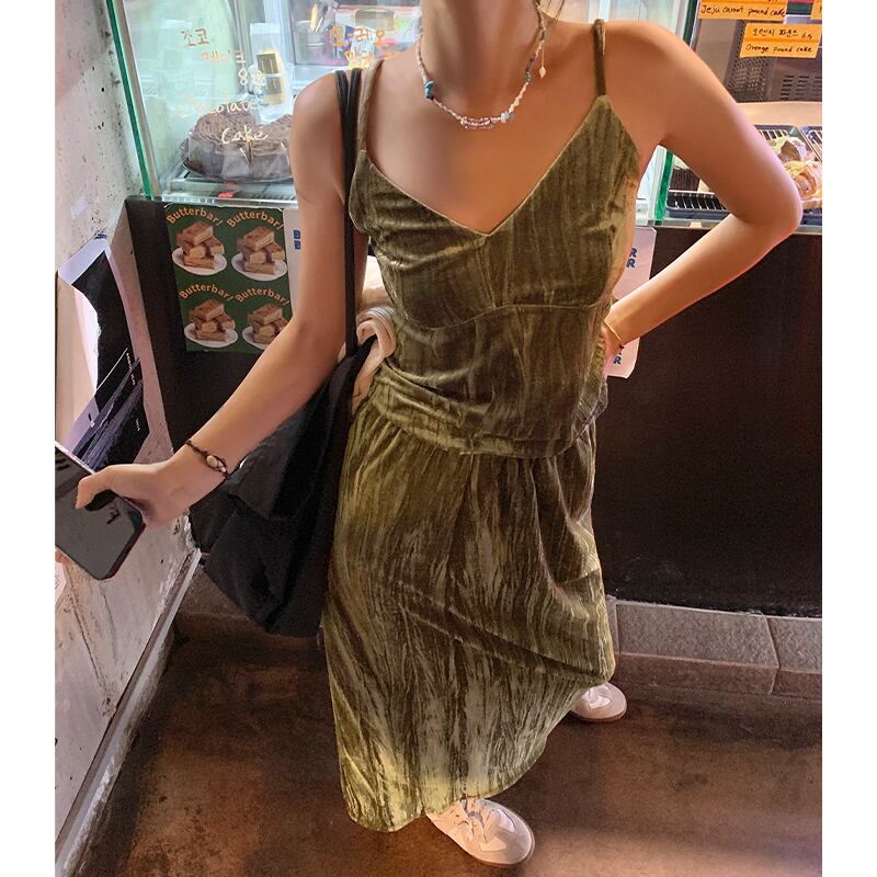 ▶︎一枚でこなれ感を演出できるベルベット生地のセットアップです。