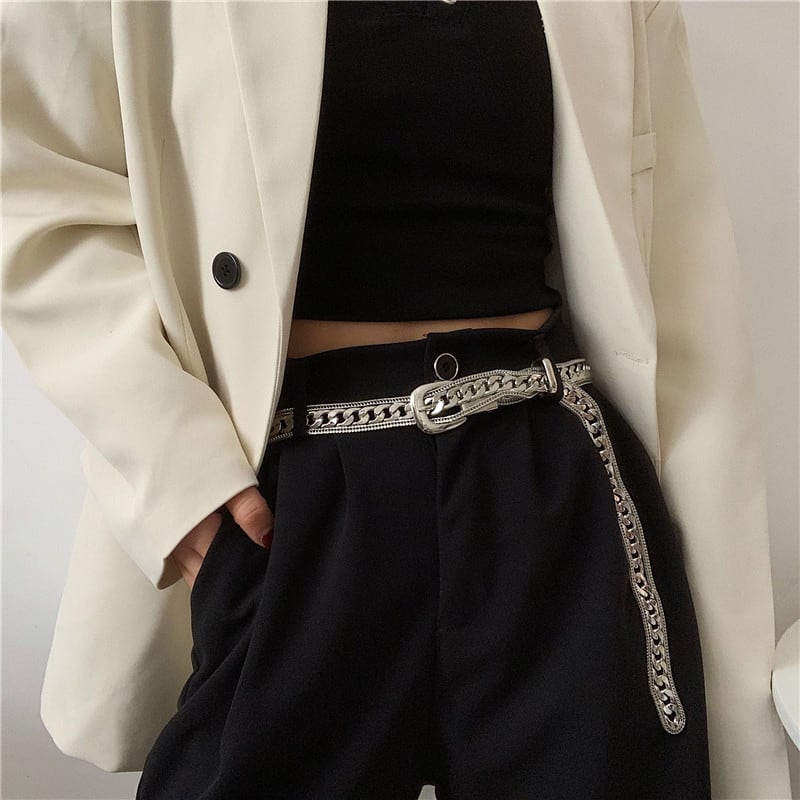 ▶︎チェーンのデザインが目を惹くシルバーベルト。